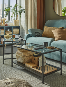 Furnitur multifungsi seperti sofabed FRIHETEN membantu menjaga ruang tetap rapi sekaligus siap digunakan untuk berbagai kegiatan. Meja susun VITTSJÖ menambah fleksibilitas sebagai meja tambahan yang mudah dipindahkan sesuai kebutuhan, sehingga ruang tetap lapang tanpa mengurangi kenyamanan.