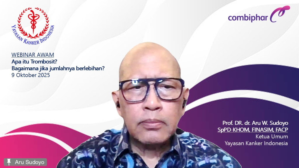 “Kami di Yayasan Kanker Indonesia sangat senang dapat menyelenggarakan webinar ini sebagai bagian dari kegiatan promotif kami dalam edukasi kanker. Trombosit sering kali dianggap remeh, padahal jumlahnya yang berlebihan bisa menjadi indikator awal dari kondisi serius, termasuk kanker darah. Maka msyarakat perlu memahami bahwa edukasi dini bukan hanya mencegah, tapi juga memberi harapan untuk deteksi dan penanganan yang lebih baik,” ujar Prof. DR. dr. Aru Wisaksono Sudoyo, SpPD-KHOM, FINASIM, FACP.