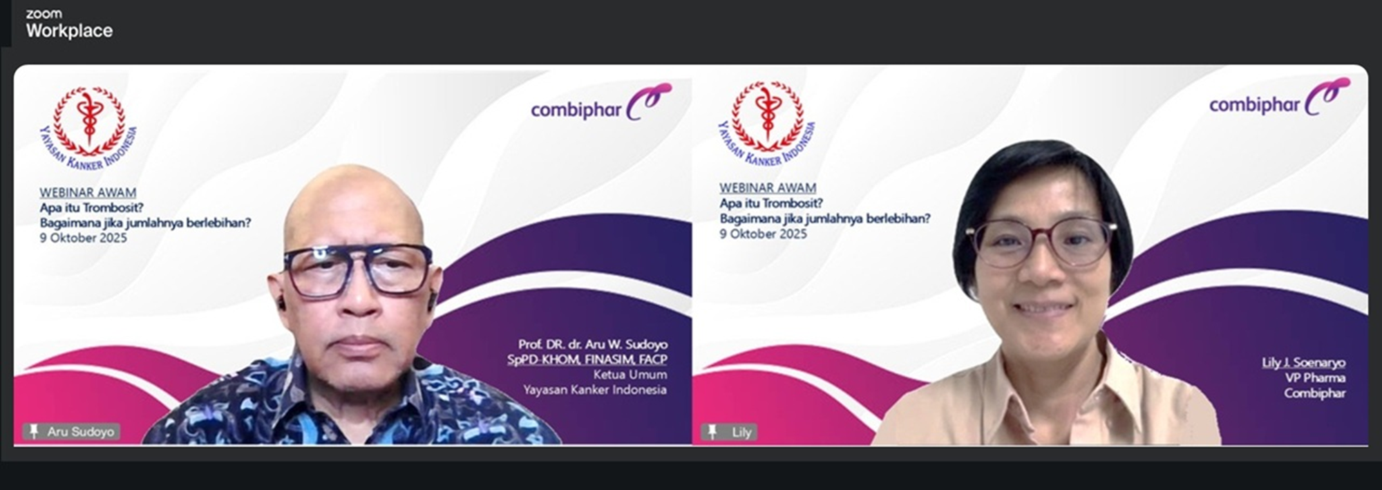 Melalui webinar yang menghadirkan dua pembicara : Prof. DR. dr. Aru Wisaksono Sudoyo, SpPD-KHOM, FINASIM, FACP, Ketua Umum Yayasan Kanker Indonesia dan Lily J. Soenaryo, VP Pharma Combiphar, masyarakat diajak untuk memahami bahwa trombosit bisa menjadi penentu antara pemulihan dan risiko serius seperti stroke, serangan jantung, bahkan keguguran.