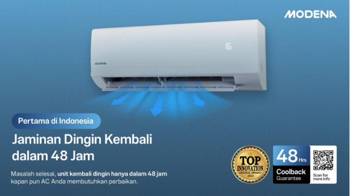 Berkat inovasi 48 Hours Coolback Guarantee yang disematkan pada lini produk Air Conditioner (AC) terbarunya, MODENA — merupakan Perusahaan Multinasional yang didirikan di Italia, dan dimiliki oleh Indonesia sejak tahun 1981 — berhasil meraih “Top Innovation Choice Award 2025”.